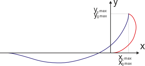 Red color designates a trajectory of moving of the center of mass of all system,  dark blue - moving of the case ( Mc ).